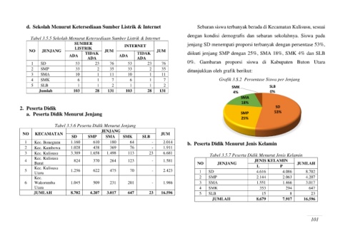 d. Sekolah Menurut Ketersediaan Sumber Listrik & Internet Sebaran siswa terbanyak berada di Kecamatan Kulisusu, sesuai