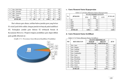 10 Kec. Tirawuta 2 25 4 1 272 6 310 Tabel 3.7.14 Guru Menurut Status Kepegawaian