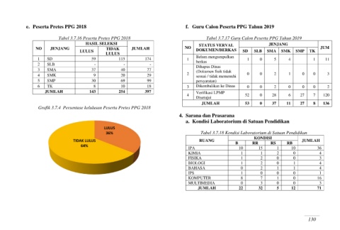 Tabel 3.7.16 Peserta Pretes PPG 2018 Tabel 3.7.17 Guru Calon Peserta PPG Tahun 2019