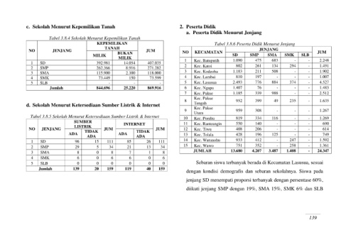 c. Sekolah Menurut Kepemilikan Tanah 2. Peserta Didik