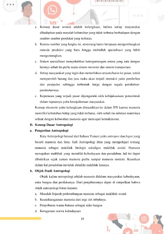 a. Konsep dasar sentral adalah kelangkaan, bahwa setiap masyarakat