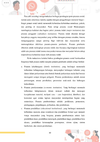 Perlu mahasiswa ketahui bahwa pembagian pranata sosial berdasarkan