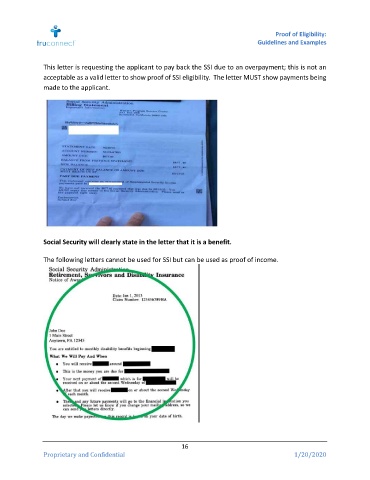 acceptable as a valid letter to show proof of SSI eligibility. The letter MUST show payments being