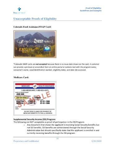 The following are NOT acceptable as proof of participation in the SSI Program: