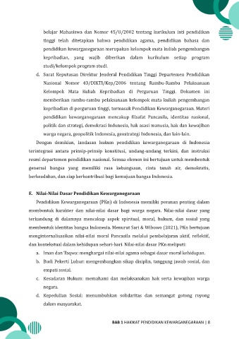 kepribadian di perguruan tinggi, termasuk Pendidikan Kewarganegaraan. Materi