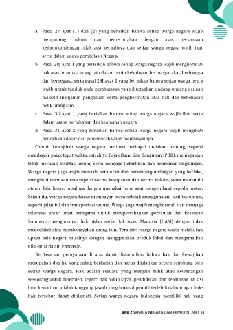 a. Pasal 27 ayat (1) dan (2) yang berisikan bahwa setiap warga negara wajib