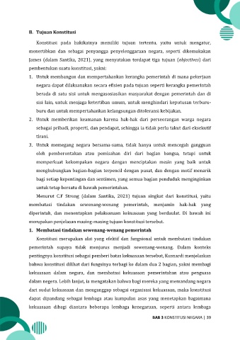 Menurut C.F Strong (dalam Santika, 2021) tujuan singkat dari konstitusi, yaitu