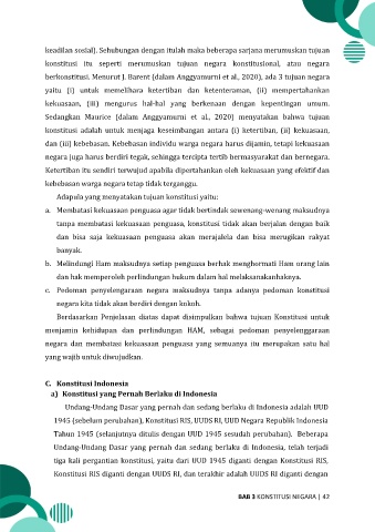 berkonstitusi. Menurut J. Barent (dalam Anggyamurni et al., 2020), ada 3 tujuan negara