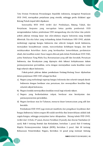 Sistematika UUD 1945 terdiri dari Pembukaan, Batang Tubuh, dan