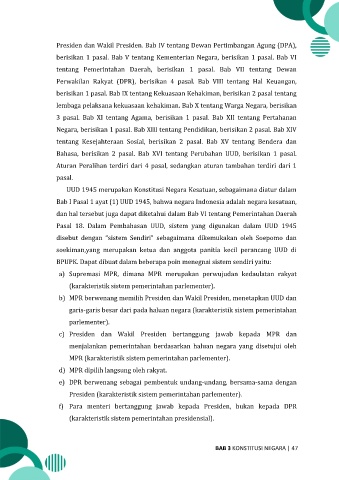 berisikan 1 pasal. Bab V tentang Kementerian Negara, berisikan 1 pasal. Bab VI
