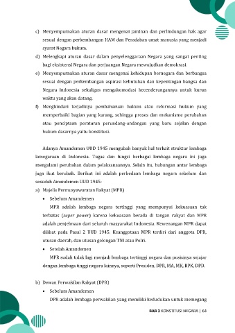 e) Menyempurnakan aturan dasar mengenai kehidupan bernegara dan berbangsa