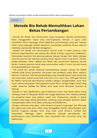 Berikut ini terdapat artikel untuk memulihkan bekas lahan pertambangan. 15