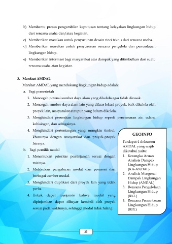 b) Membantu proses pengambilan keputusan tentang kelayakan lingkungan hidup