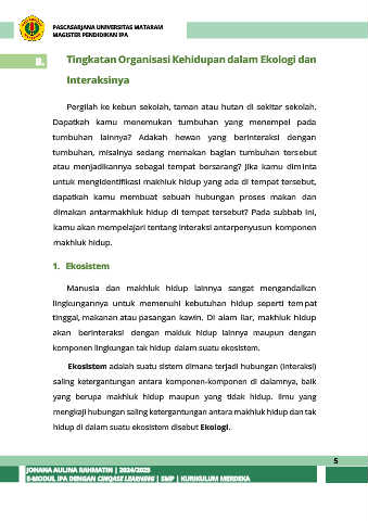 dimakan antarmakhluk hidup di tempat tersebut? Pada subbab ini,