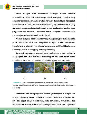 Gambar 1.8 Contoh simbiosis (a) parasitisme, (b) mutualisme dan (c) komensalisme