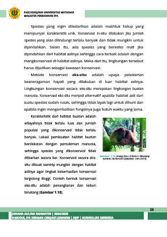 dibiarkan secara liar. Konservasi secara eks- Gambar 1. 18 Orang Utan di Kebun Binatang