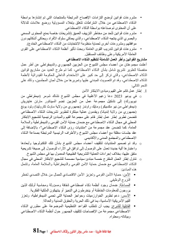 ‫منفصلة لتطوير تشريع شامل بشأن الذكاء الاصطناعي‪ ،‬كما تم طرح العديد من مشاريع قوانين‬