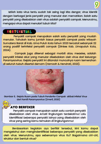 penyakit yang disebabkan oleh virus adalah penyakit campak. Menurutmu,