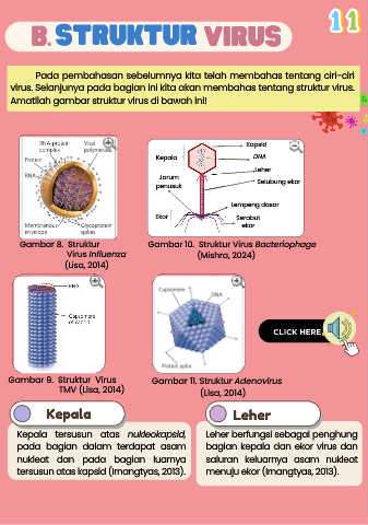 Kepala tersusun atas nukleokapsid, Leher berfungsi sebagai penghung