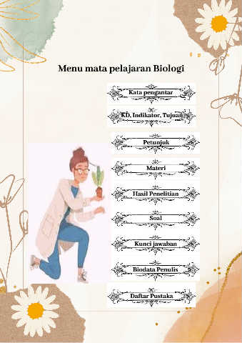Menu mata pelajaran Biologi Kata pengantar KD, Indikator, Tujuan Petunjuk Materi Hasil Penelitian Soal Kunci jawaban Biodata Penulis Daftar Pustaka