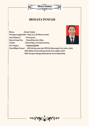 Tempat, tanggal lahir : Kayu ara, 16 February 2001