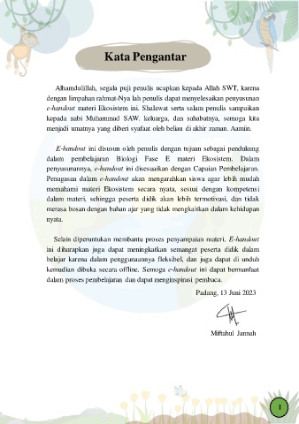 e-handout materi Ekosistem ini. Shalawat serta salam penulis sampaikan