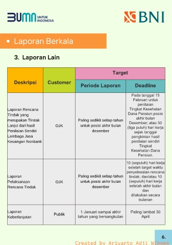 Laporan Paling sedikit setiap tahun tindak; dan/atau 10