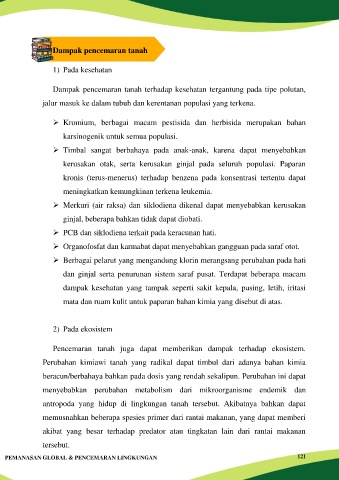 Pencemaran tanah juga dapat memberikan dampak terhadap ekosistem.