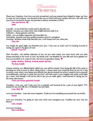 and trainer. Love you Grandma, I’m going to miss your smile and contagious joy. Goodbye for now, but not