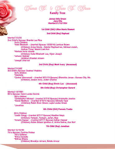 (Children) Robin Evon Green, Layla Louise Green Spiritual Fruit & Leaders’ Tributes Jonathan Mark Green & Erica Danielle Green