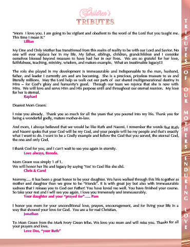 To Mom Green from the Mark Ivory Green tribe. We love you mom and will miss you. Thanks for all
