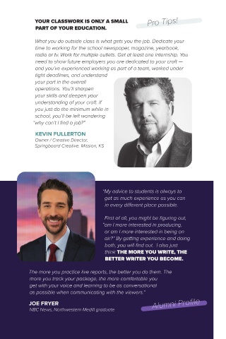 radio or tv. Work for multiple outlets. Get at least one internship. You