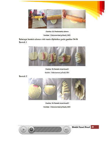 Beberapa bentuk adonan roti manis dijelaskan pada gambar 34-36
