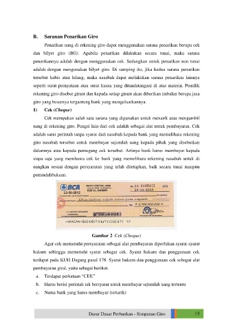 Penarikan uang di rekening giro dapat menggunakan sarana penarikan berupa cek