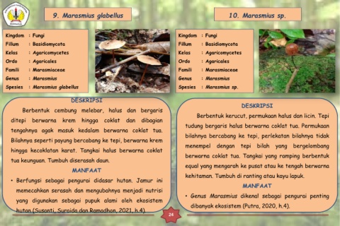 yang digunakan sebagai pupuk alami oleh ekosistem • Genus Marasmius dikenal sebagai pengurai penting