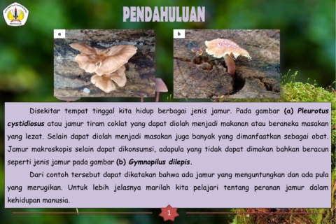 Disekitar  tempat  tinggal  kita  hidup  berbagai  jenis  jamur.  Pada  gambar  (a)  Pleurotus