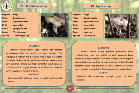 Spesies : Termitomyces sp. Spesies : Agaricus sp.