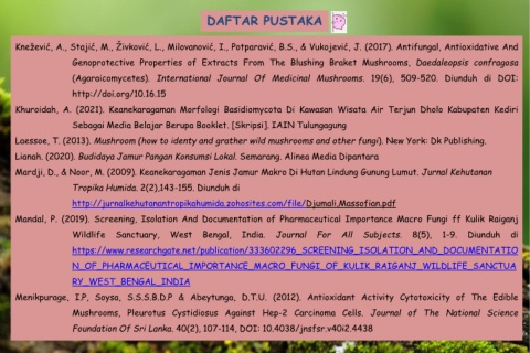 Lianah. (2020). Budidaya Jamur Pangan Konsumsi Lokal. Semarang. Alinea Media Dipantara