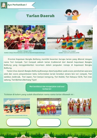 Sumber: (https://kearifanlokal.com/10-tari-daerah-bangka-belitung/) Sumber: (seni tari nusantara; 2016)