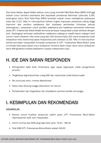 LAPORAN INDEKS KEPUASAN MASYARAKAT UPT. PUSKESMAS BIDUK-BIDUK TAHUN 2022 hal.9