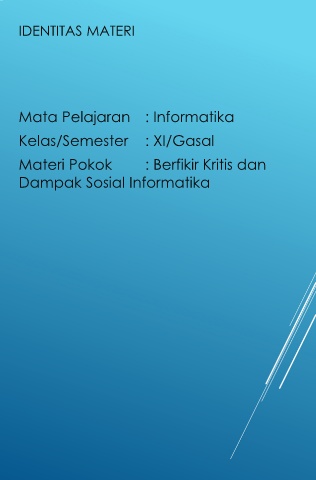 IDENTITAS MATERI Mata Pelajaran : Informatika Kelas/Semester : XI/Gasal Materi Pokok : Berfikir Kritis dan Dampak Sosial Informatika