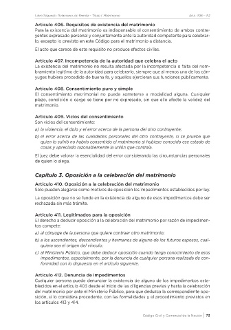 Libro Segundo. Relaciones de Familia - Título I. Matrimonio Arts. 406 - 412