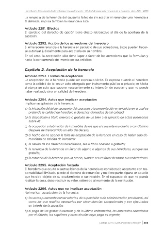 Libro Quinto. Transmisión de derechos por causa de muerte - Título II. Aceptación y renuncia de la herencia Arts. 2291 - 2296