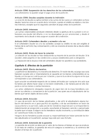 Libro Quinto. Transmisión de derechos por causa de muerte - Título VIII. Partición Arts. 2398 - 2405