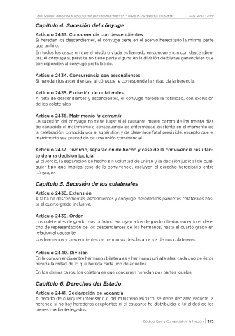 Libro Quinto. Transmisión de derechos por causa de muerte - Título IX. Sucesiones intestadas Arts. 2433 - 2441