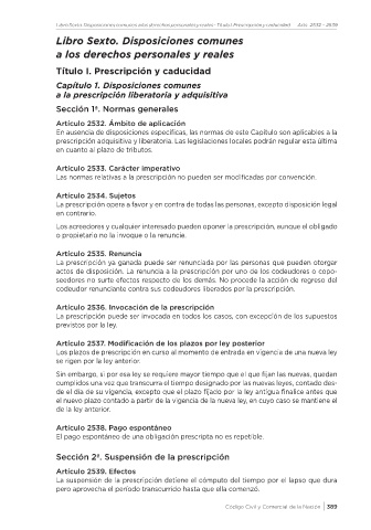 Libro Sexto. Disposiciones comunes a los derechos personales y reales - Título I. Prescripción y caducidad Arts. 2532 - 2539