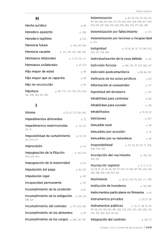 Heredero aparente p. 358 Indemnización por fallecimiento p. 272