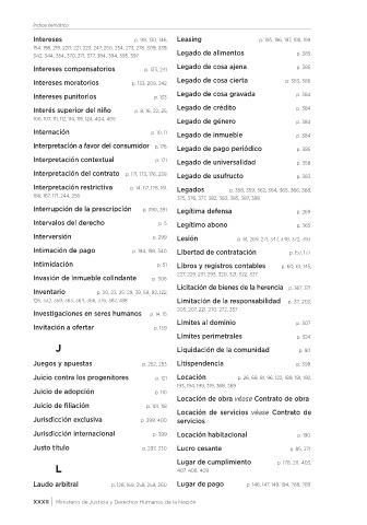Interpretación a favor del consumidor p. 176 Legado de pago periódico p. 385
