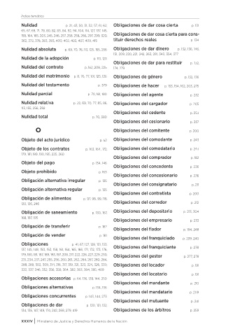Nulidad p. 21, 43, 50, 51, 52, 57, 61, 62, Obligaciones de dar cosa cierta p. 131