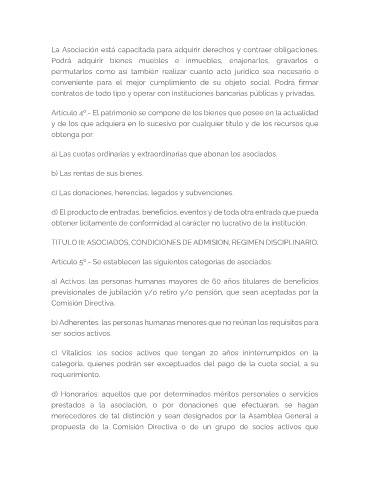 La Asociación está capacitada para adquirir derechos y contraer obligaciones.